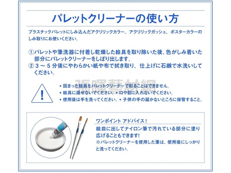 可去除塑膠調色板上乾掉的壓克力、水彩或水粉顏料污漬!