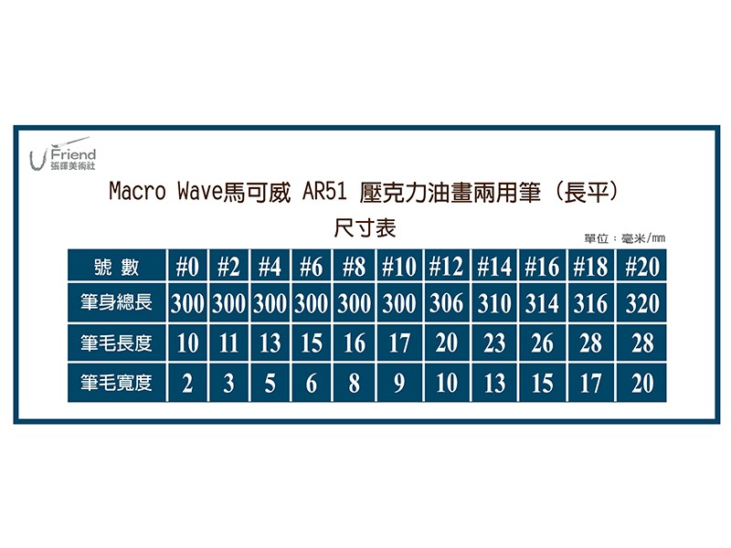 - 型號: Macro Wave馬可威壓克力油畫兩用筆(AR51/長平#0~20)