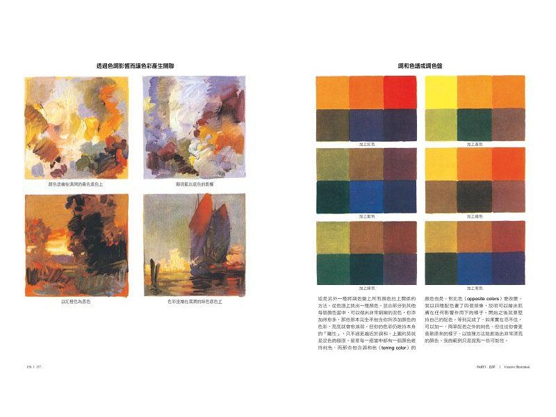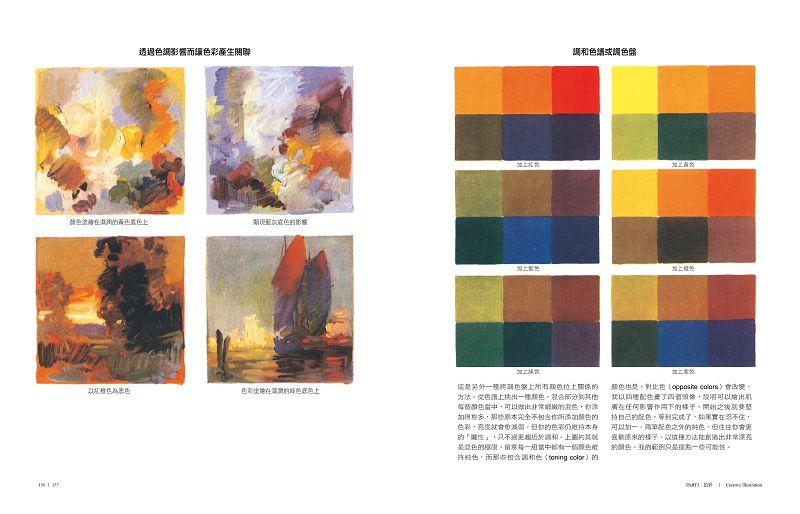 談到美感,就想到色彩。好的配色讓畫作傳達正確的氣氛。但習畫者常常忘記,顏料其實有局限,如果不將色彩分組使用,常會讓畫面灰濛骯髒。對色彩品味拙劣,其實只是缺乏色彩的相關知識。本書將色彩簡單分成三組,並利用「色彩調性」說明配色方法,同時說明色彩如何受到光的影響,以及黑色的運用方法。