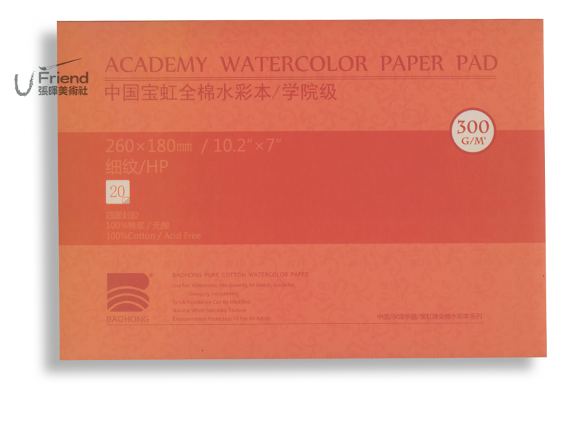 - 型號: 寶虹學院級全棉水彩本(細紋/300g/7種尺寸)