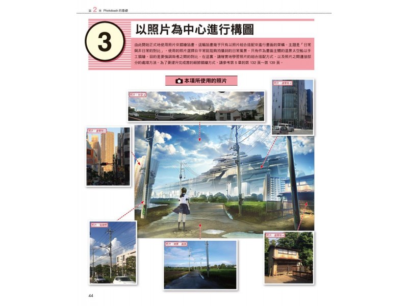 所謂Photobash,指的是將數張照片(Photo)在畫布上剪貼組合(bash)製作成為插畫的技法。