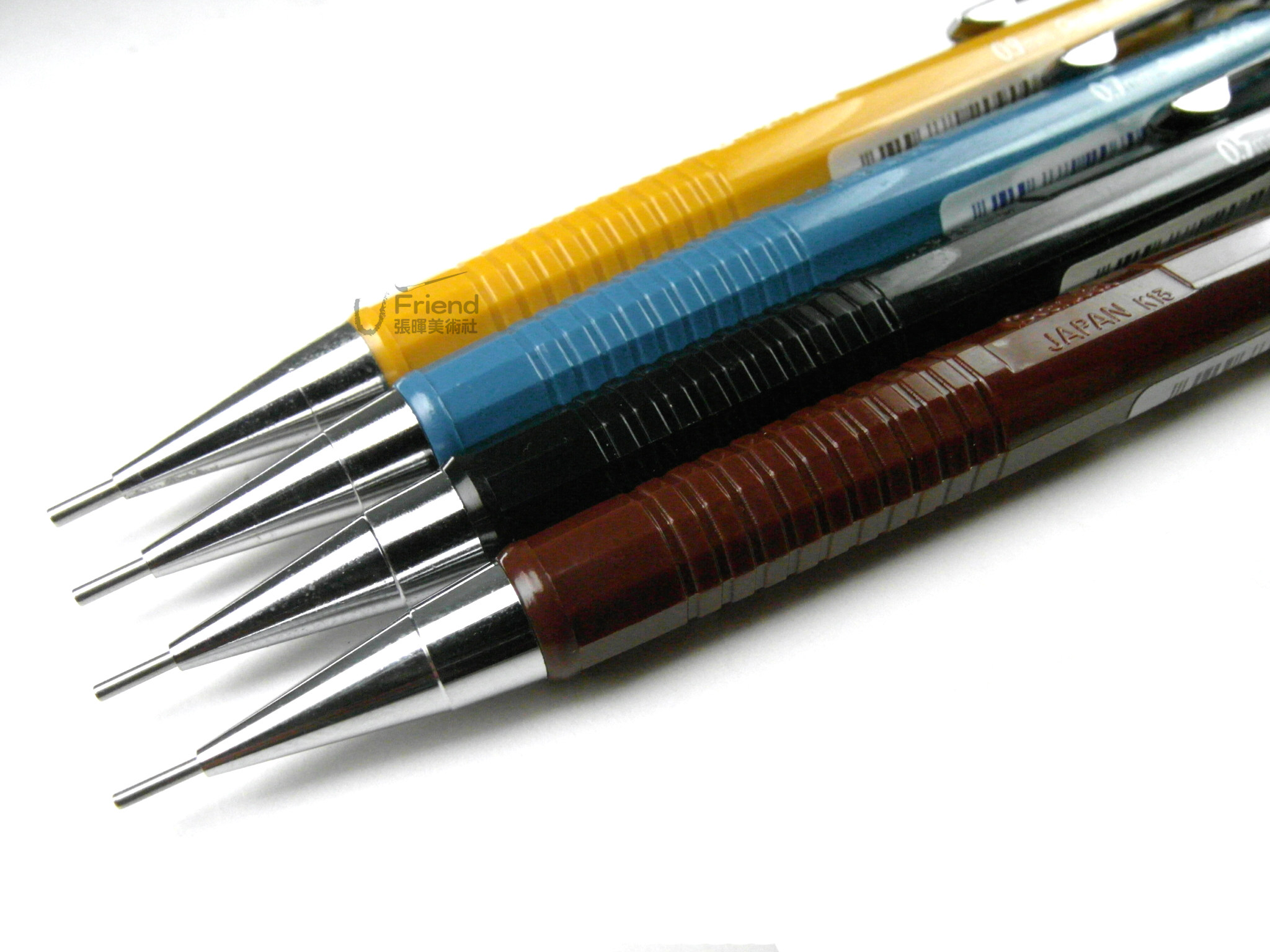 ●0.3咖啡色筆桿0.5黑色筆桿0.7藍色筆桿0.9黃色筆桿充滿質感的金屬筆身