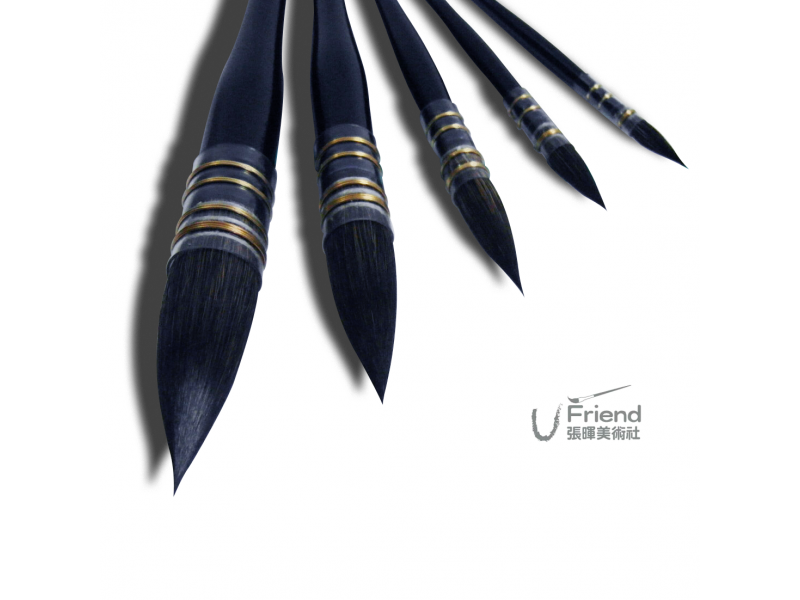 - 使用俄羅斯藍松鼠毛+紫貂毛+紅貂毛+些許合成纖維製作而成,擁有良好吸水性及絕佳的彈性,適合水彩使用。