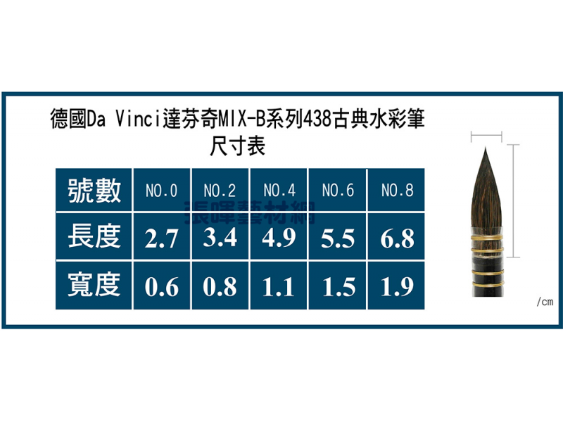 - 型號: 德國Da Vinci達芬奇MIX-B系列 438 古典水彩筆(5種尺寸)